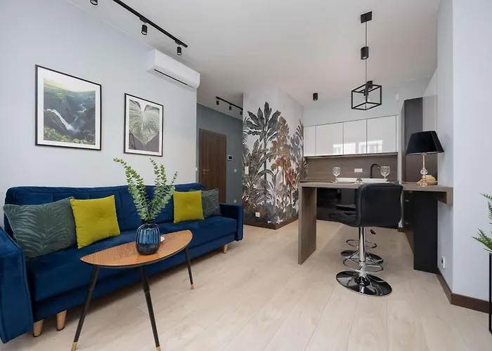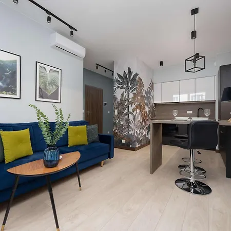 Ogrodowa Elegant Apartment With Parking And Air Conditioning In Warsaw By Noclegi Renters offers a balcony, a sitting area, and a living room, as well as comforts like an air conditioner. This apartment is equipped with a bathroom that features a dryer and towels. Furthermore, a separate toilet and a shower is available.